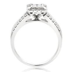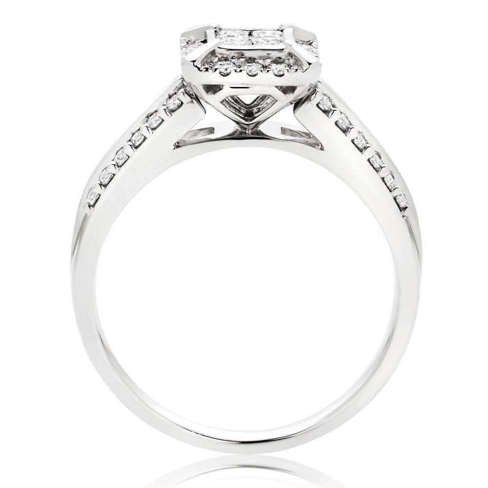 Simply stunning, this gorgeous 18ct White Gold Diamond Princess Cut Cluster Halo Ring is a beautiful combination of vintage-inspired glamour and modern design. One of our favourite styles from the past, this breathtaking halo setting creates the beautiful illusion of a much larger stone whilst maximising the sparkle and fire of the diamonds.