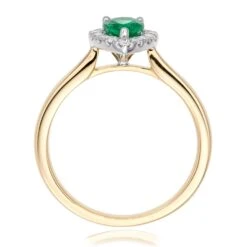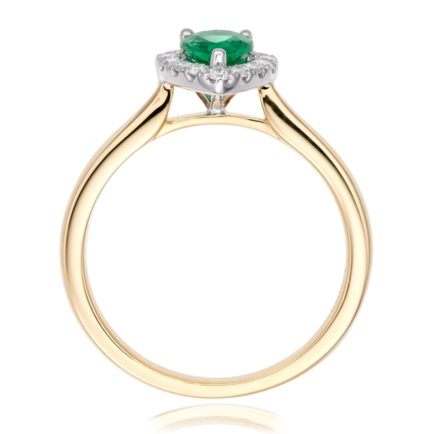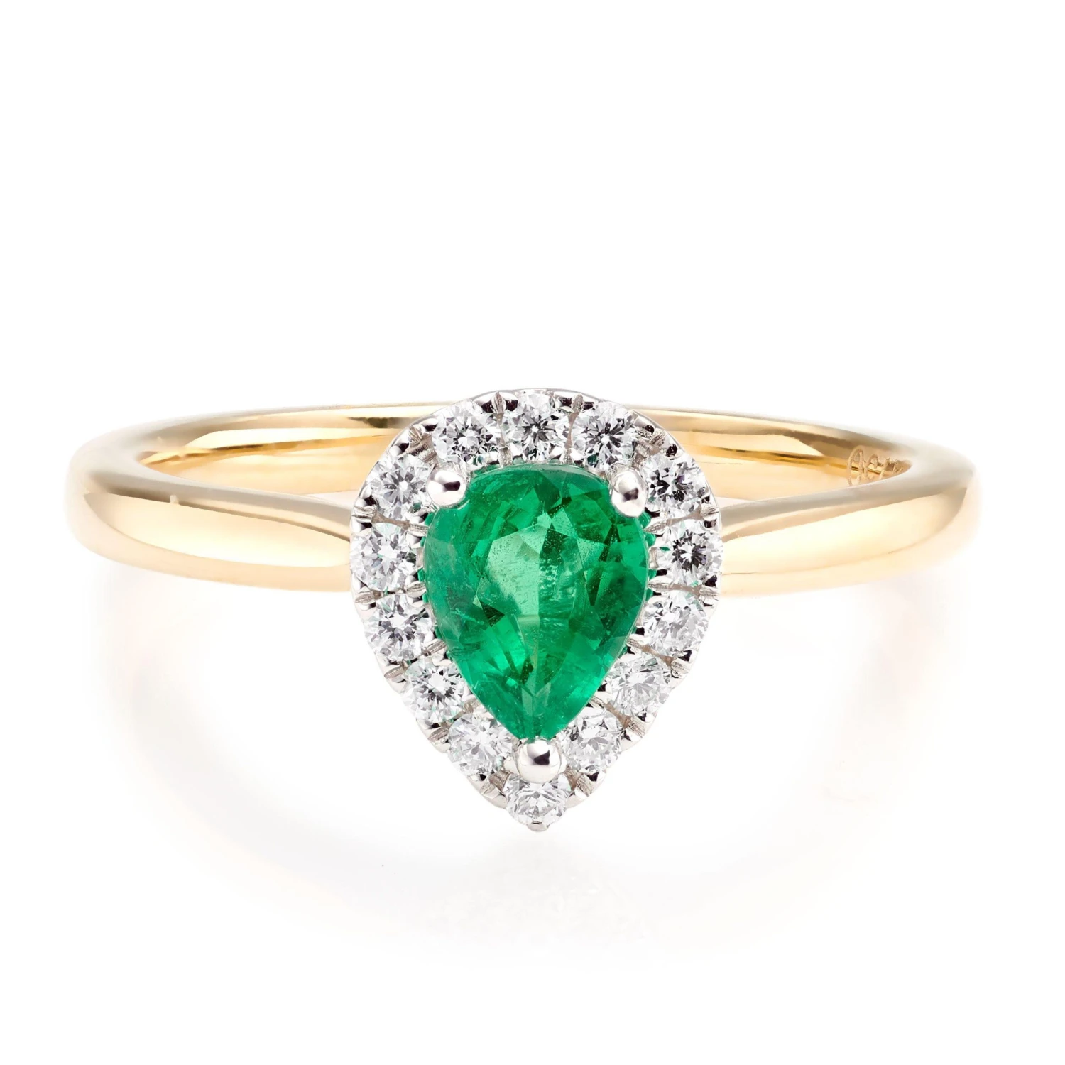 Effortlessly capturing your full attention with a mesmerising emerald that is rich in colour, this 18ct Yellow Gold Diamond Emerald Ring is the epitome of luxury. The sleek and sophisticated halo design combined with the pear cut style, is bound to make a sumptuous impression.