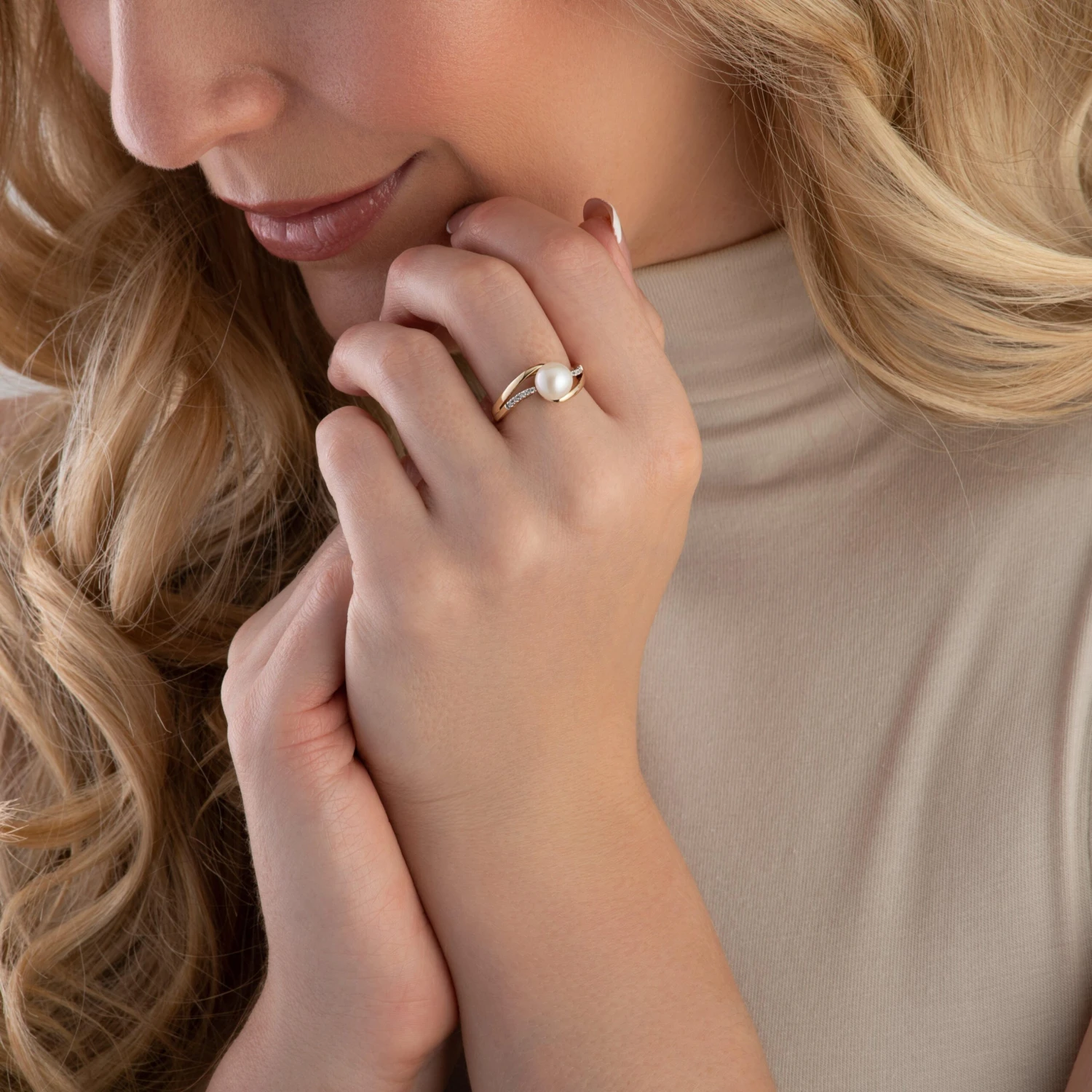 This 9ct Gold Diamond Freshwater Cultured Pearl Ring showcases a sophisticated and elegant style for a ring that will dress up your look whatever the occasion.