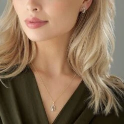 - Teardrop-shaped pendant with a diamond embellishment