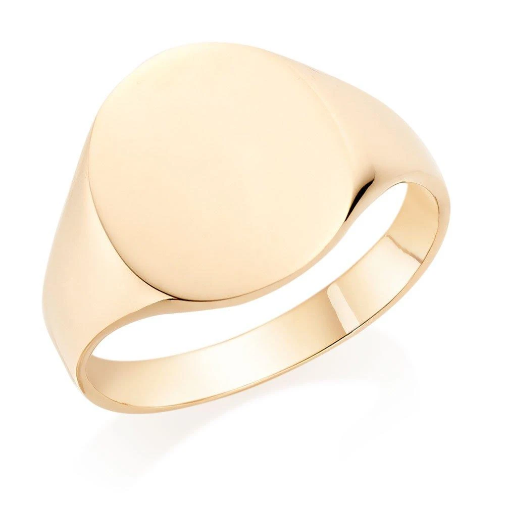 Sleek and stylish, this 9ct gold signet ring is a must-have for the new season. Designed in 9ct gold, this stylish design features a polished band with the oval signet design in the centre. Stand out from every crowd for your trendsetting style with this on-trend signet ring.