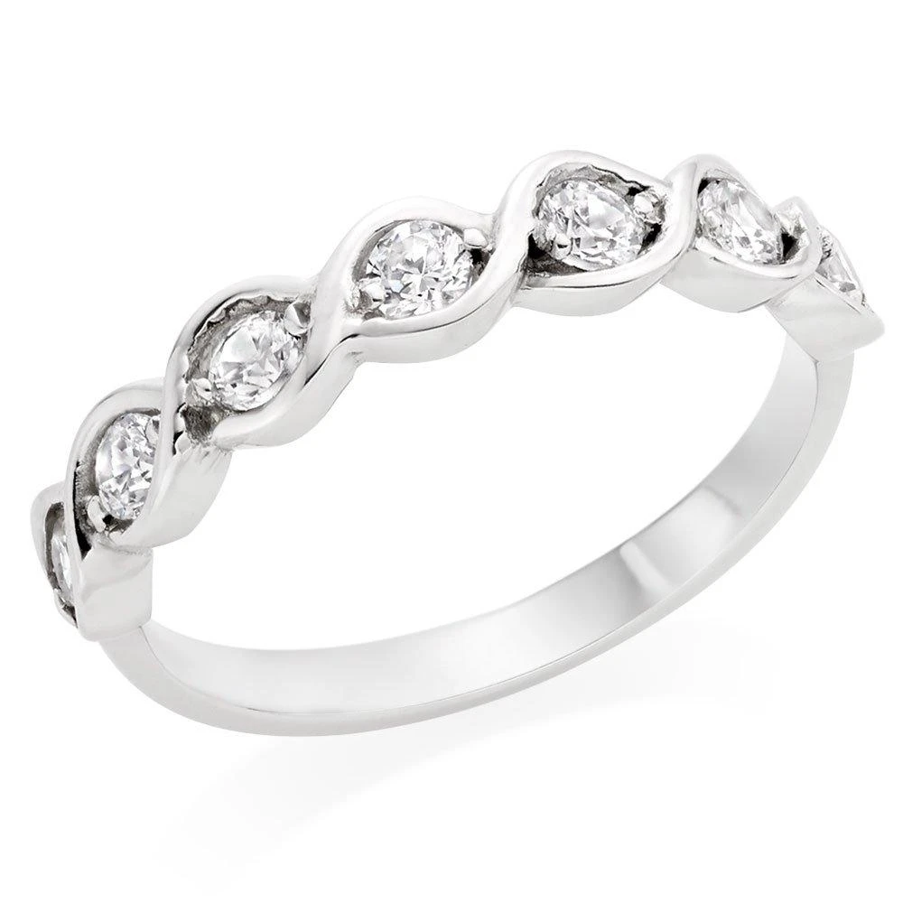 Add a glittering finish to your look or spoil someone special to this beautiful 9ct white gold cubic zirconia rubover ring.