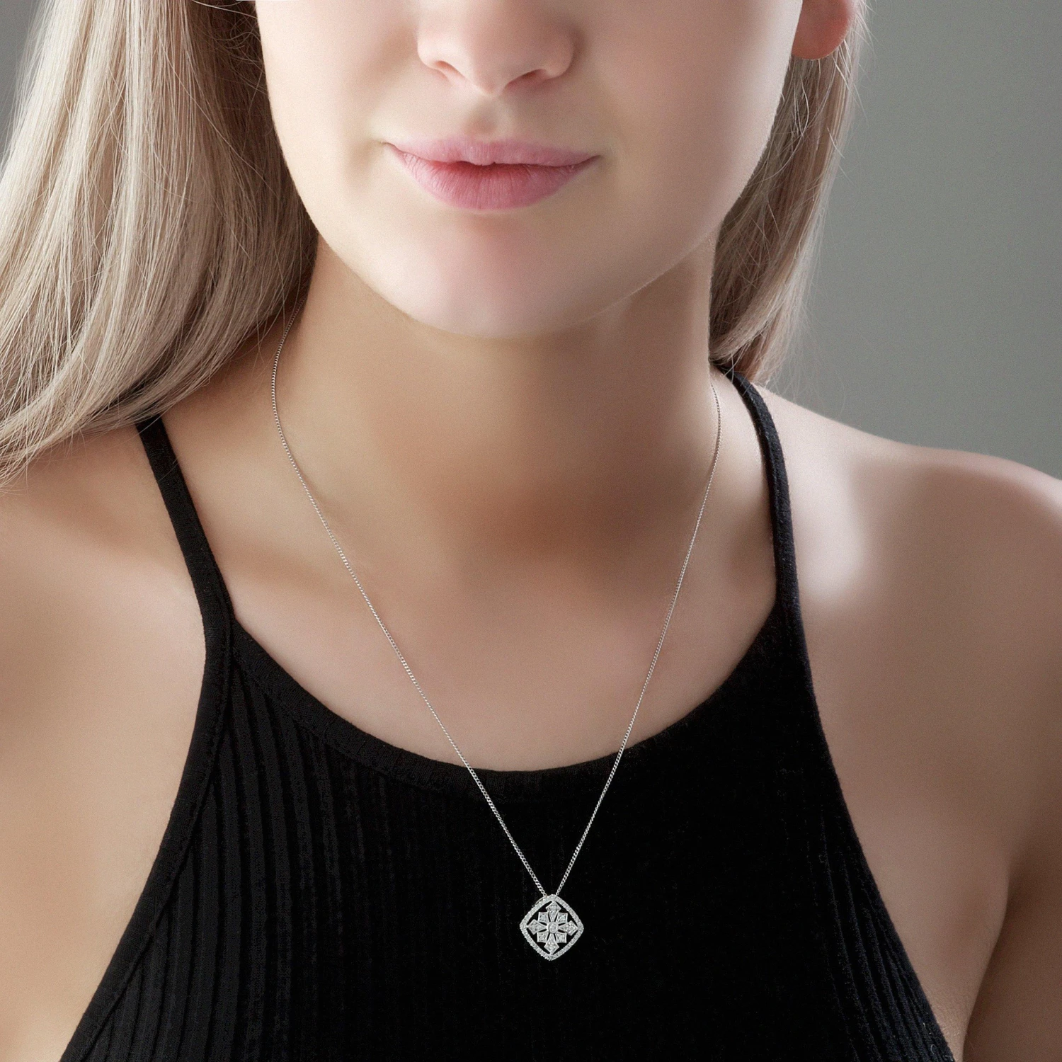 Sparkle into the evening with this 9ct White Gold Diamond Cluster Pendant. A cluster of diamonds embellishes this statement design, perfect for evening wear.