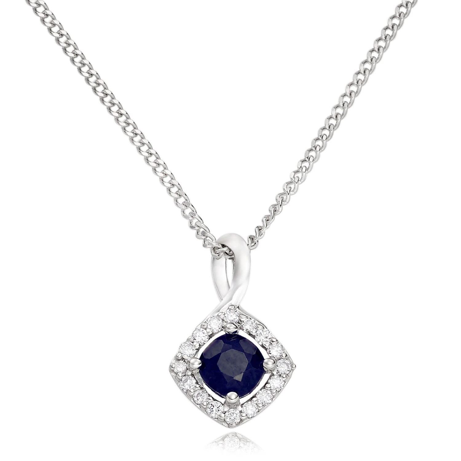 Add a touch of luxurious sparkle to your look with this gorgeous 9ct White Gold Diamond Sapphire Necklace. A truly breath-taking and timeless piece, radiating elegance and charm this is the perfect enhancement to any jewellery box.