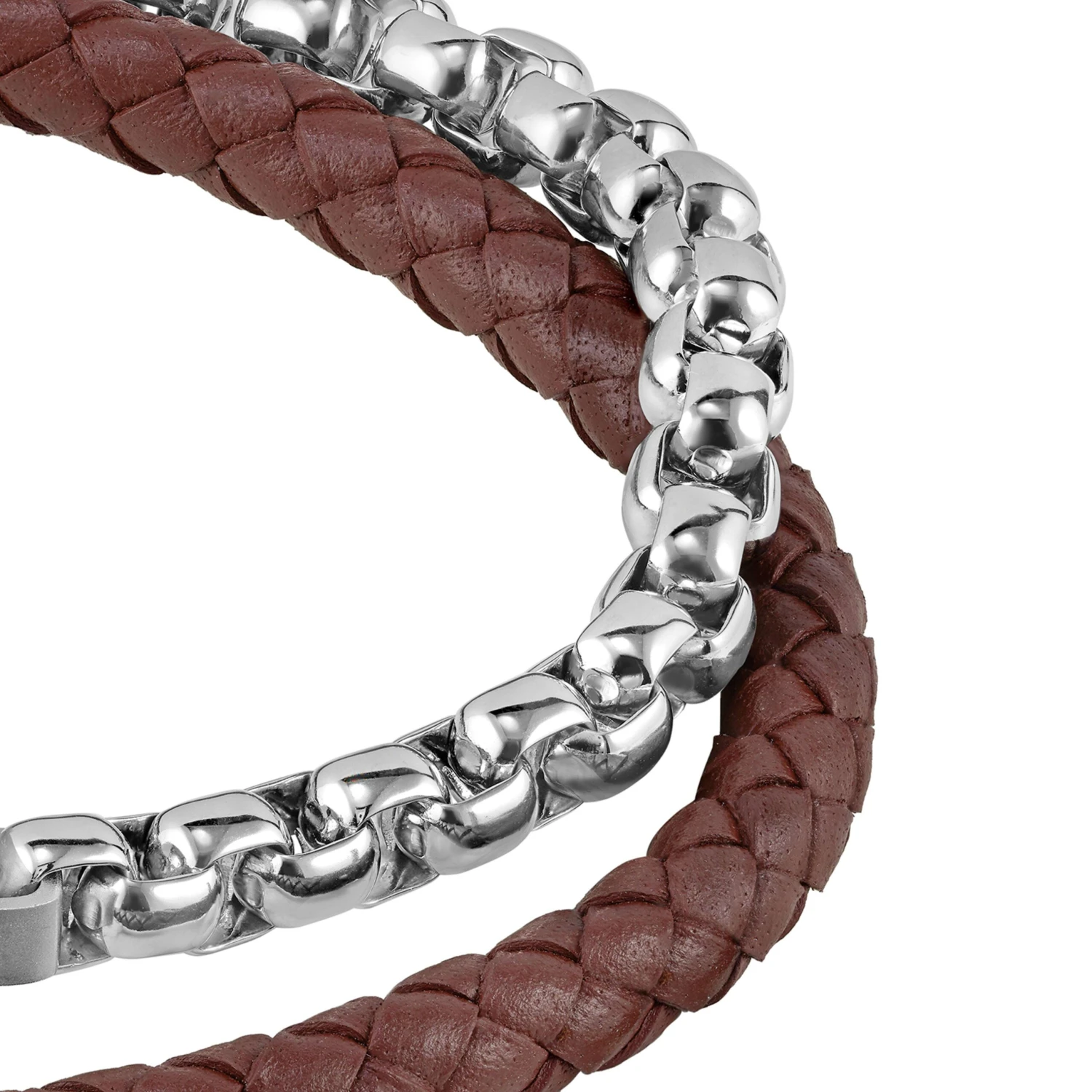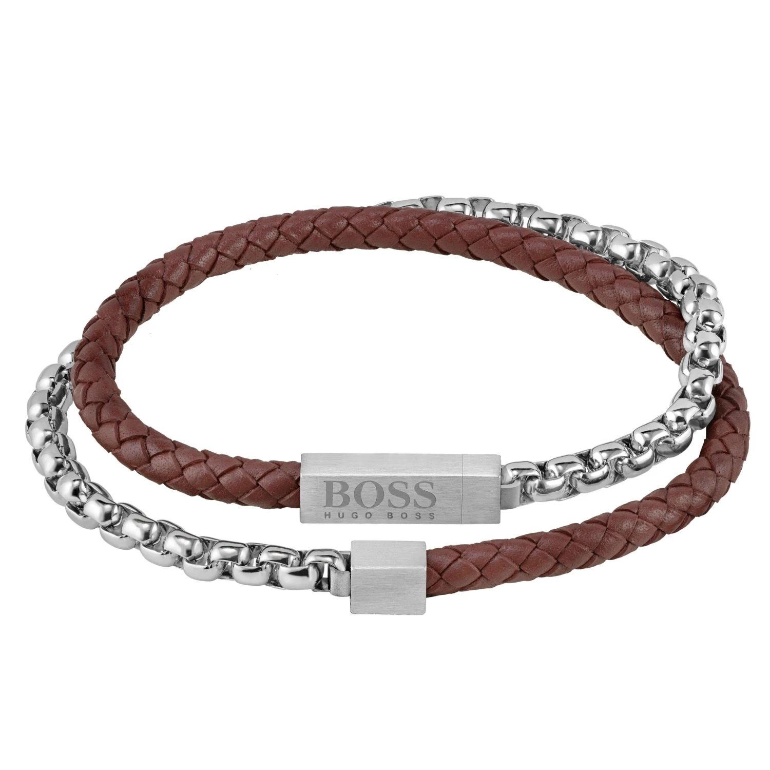 Offering a stylish touch to every look, this BOSS Chain and Brown Leather Double Wrap Men’s Bracelet delivers distinct designer details to complement your everyday style.