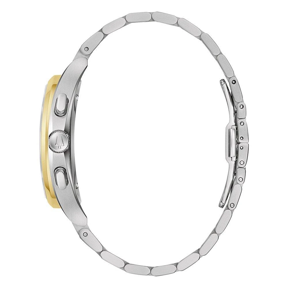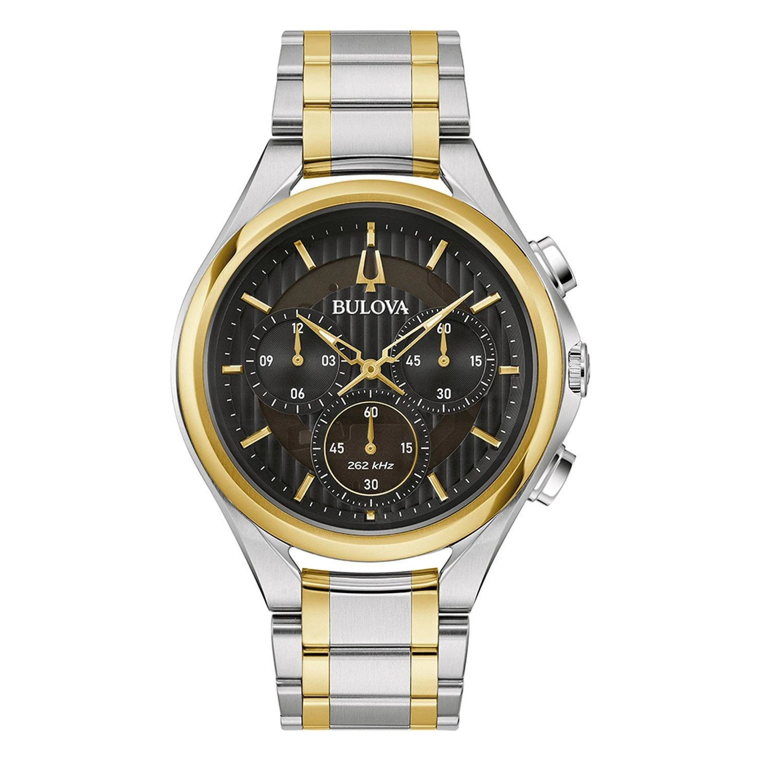 Reinterpreting the elegant lines of the original Curv, this new Bulova Curv BI-Metal Chronograph Quartz Men’s Watch showcases unrivalled style with pioneering technology. Boasting a sleek and refined aesthetic combined with incredible functionality, this sophisticated timepiece is equipped with the world’s first curved chronograph movement. Designed with a two-tone stainless steel bracelet and striking striped pattern dial, take enhanced luxury with you everywhere you go.