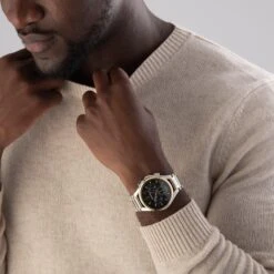 - Presented on a two-tone stainless steel bracelet and finished with a deployment buckle with push button