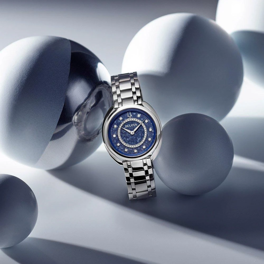 This Bulova Duality Diamond Automatic Ladies Watch is a gorgeous new addition from the brand. Offering unparalleled elegance and versatility, this stand-out design showcases a captivating blue dial, adorned with 51 hand-set diamonds, this timepiece offers timeless refinement in every way.