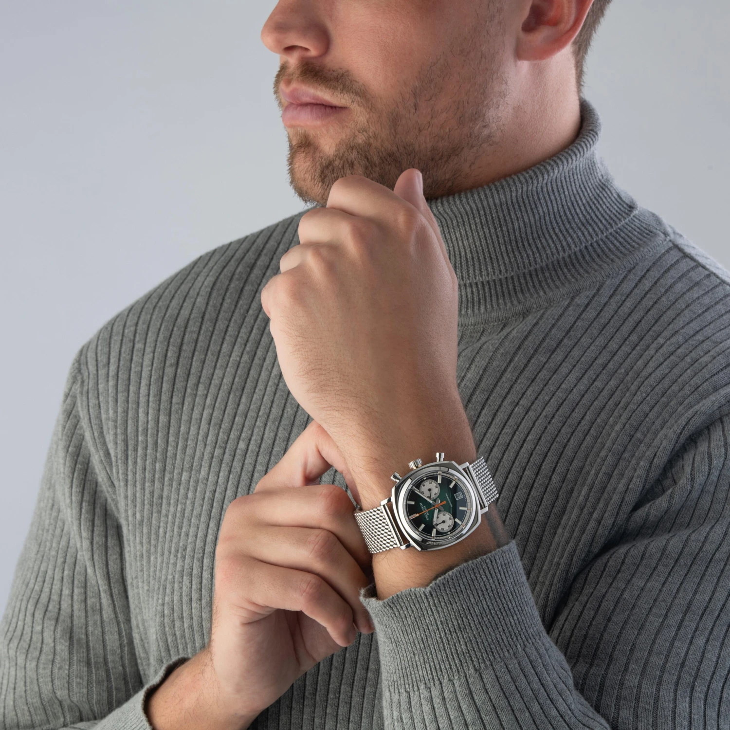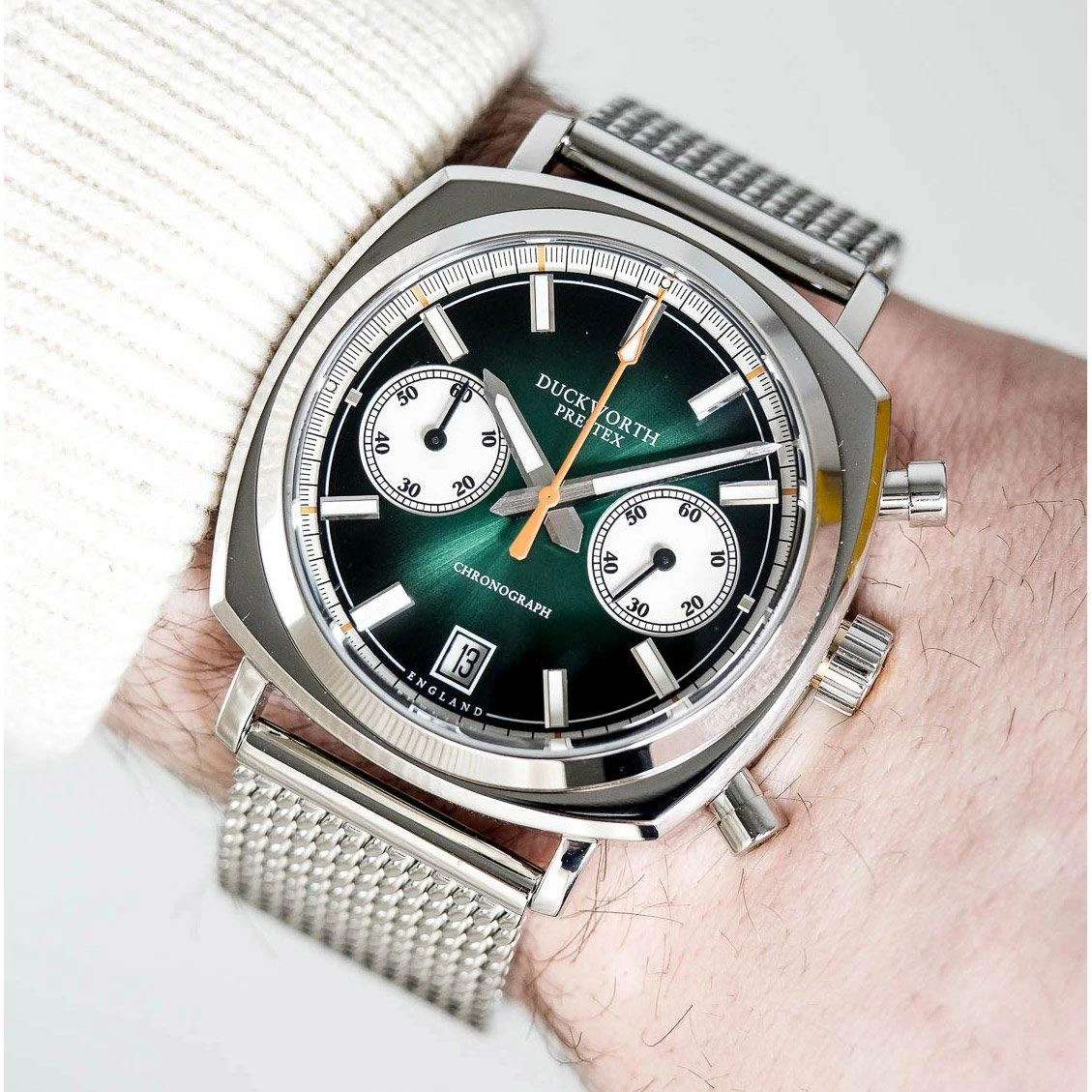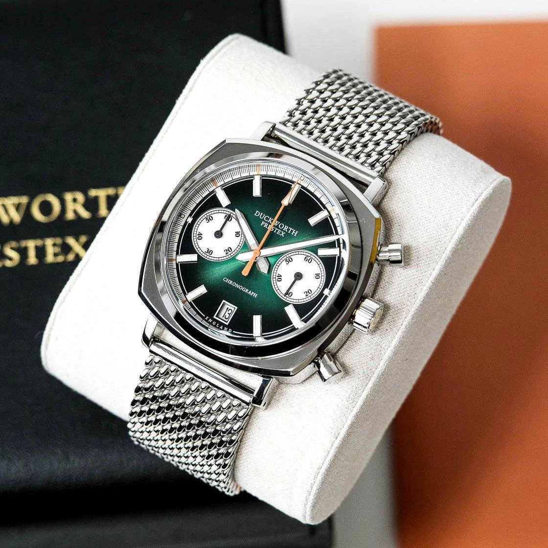 This striking Duckworth Prestex Limited Edition Green Chronograph Men’s Watch is a contemporary reinterpretation of a Prestex classic. Showcasing a retro polished aesthetic, this timepiece features contrasting elements to accentuate its flawless detail. Powered by a Miyota 6S21 quartz movement, chosen for its reliability and precision, this chronograph will not let you down.