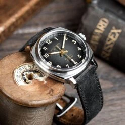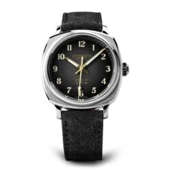 - Presented on a ebony Italian suede leather strap