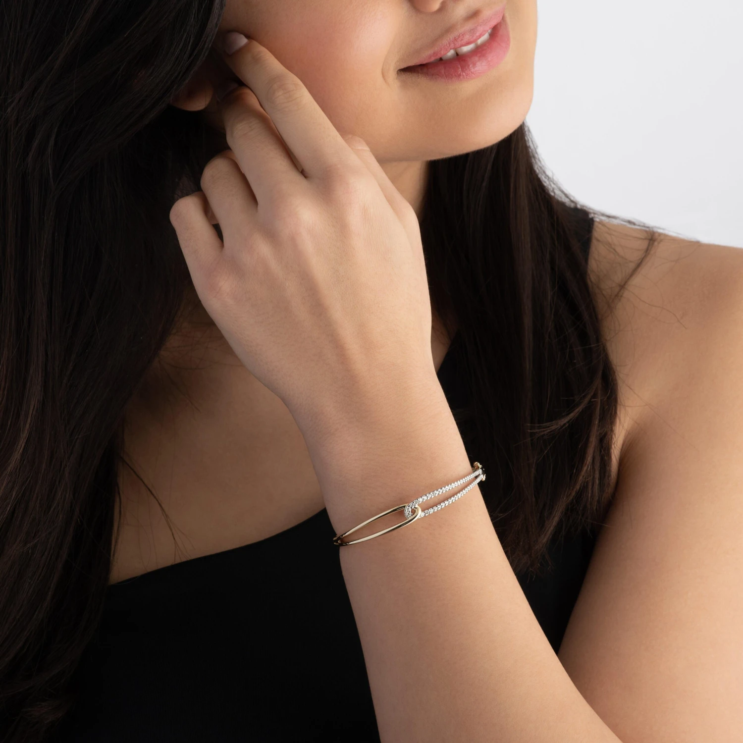 For a gift they will never forget, this Essence 9ct White and Yellow Fold Diamond Bangle reminds us of the people in our life we just couldn’t live without. Beautifully crafted with an interlocking white and yellow gold design, embellished with magnificent round brilliant diamonds, this precious piece holds a special meaning and a sparkle created to be treasured for a lifetime.
