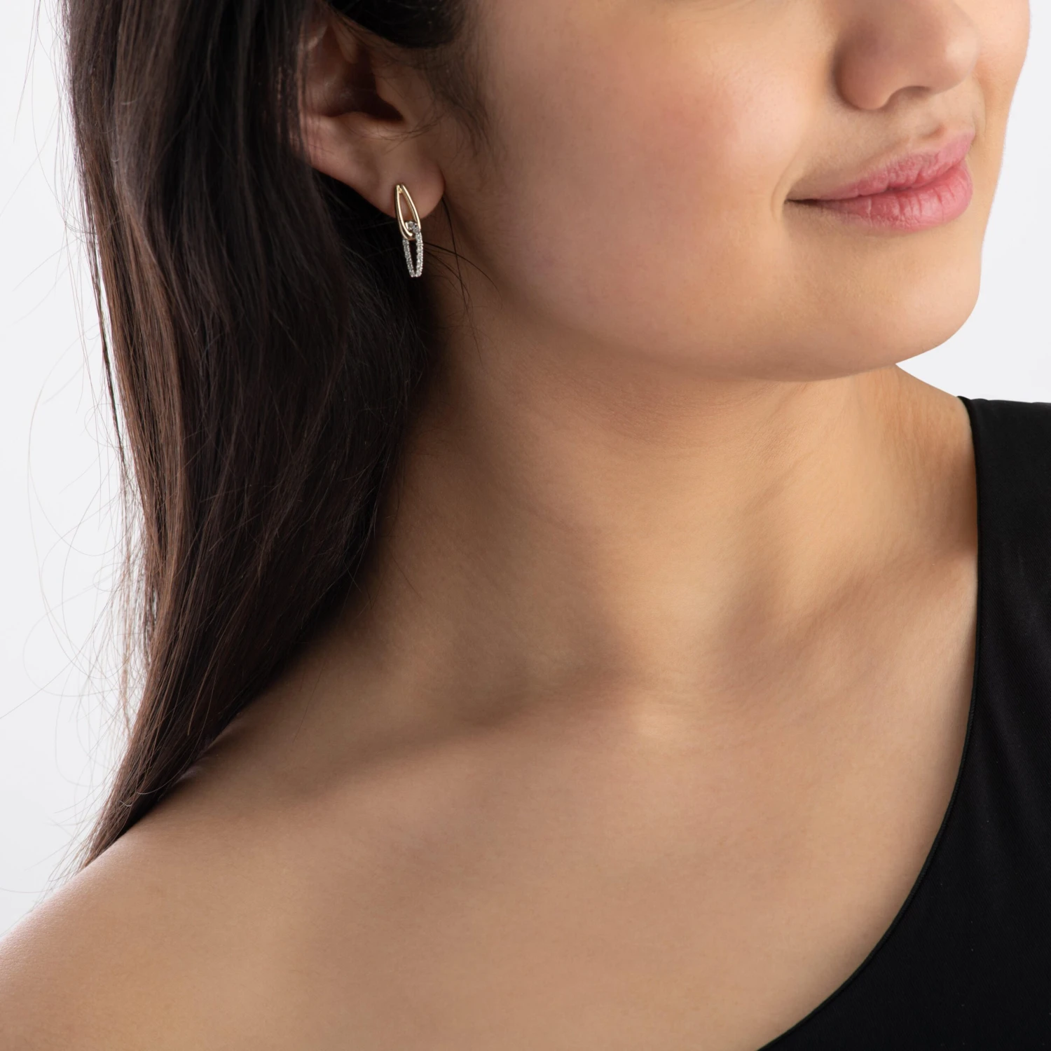 Fusing together sentiment with heart-felt meaning, these Essence 9ct White and Yellow Gold Diamond Earrings have been designed to resemble those special connections and relationships that we simply couldn’t be without. The interlocking design of the sparkling white and yellow gold represents a warm hug, the link of an arm or an unbreakable bond, the perfect gift for the person who means the most to you.