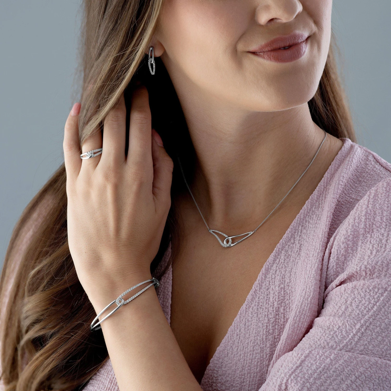 When you canβt quite find the words to say, this Essence 9ct white Gold Diamond Necklace will do all the talking. Instantly representing the deep connection you share with its interlocking white metal design and defining your durable bond with the glistening diamonds, this necklace will have them smiling from ear to ear.