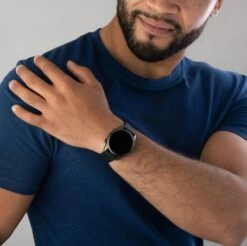 - Presented on a silicone strap and finished with a buckle