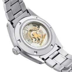 - Powered by an automatic movement with manual winding