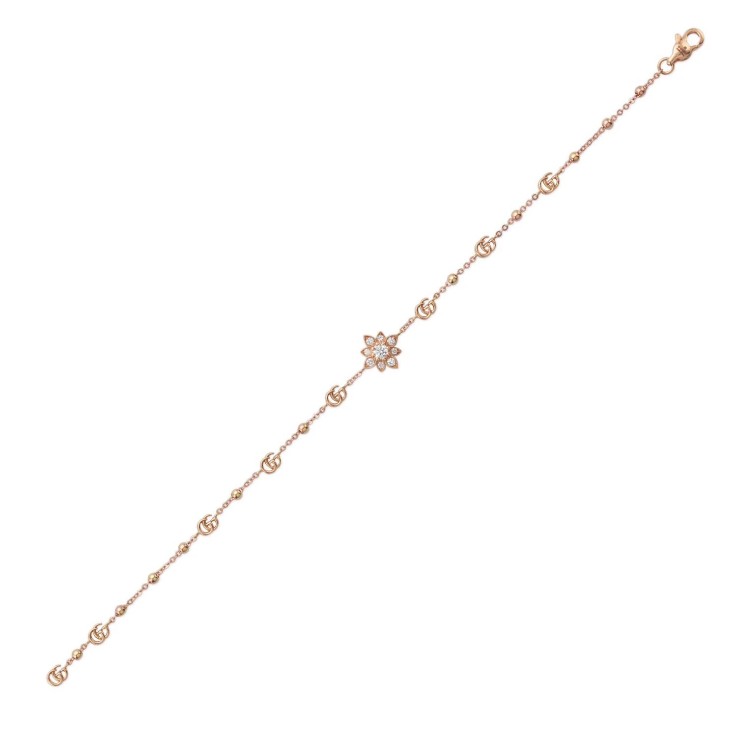 Incorporating the original Flora print designed by Italian artist Vittorio Accornero, this Gucci Flora Rose Gold Diamond Bracelet radiates a classic 60s aesthetic with a sparkling twist, perfect for every occasion come day or night.