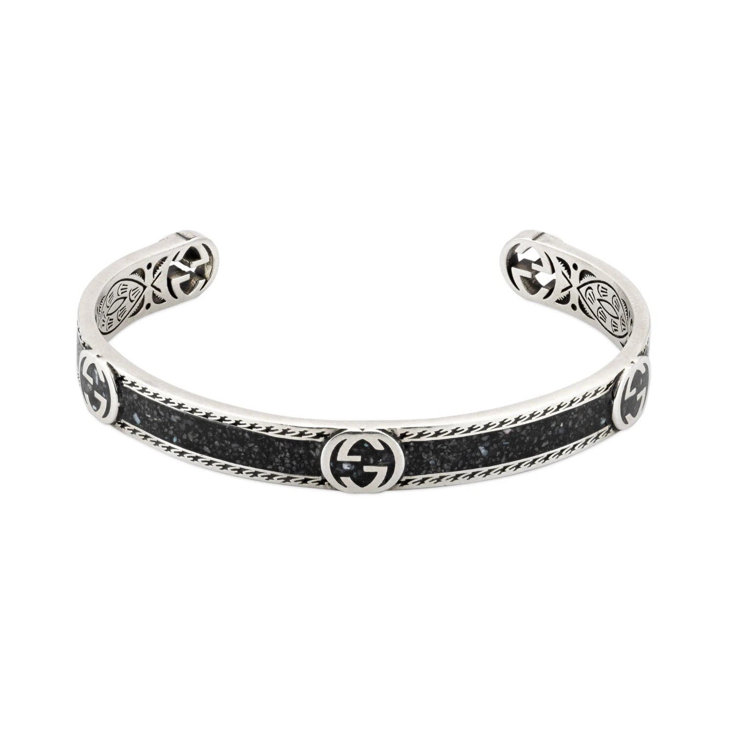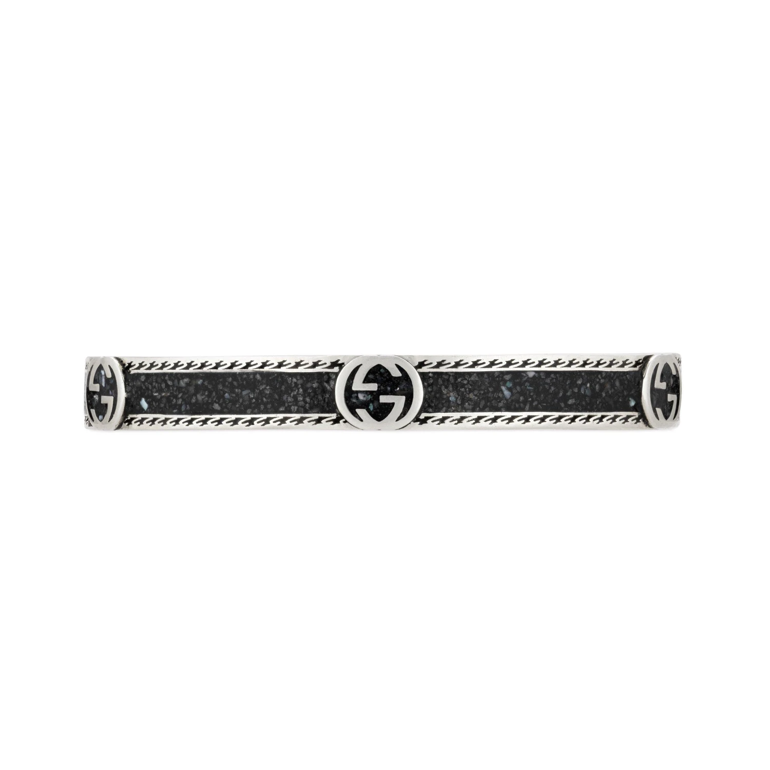 Stand out from the crowd in Gucci style with this sumptuous Silver and Black Enamel Interlocking G Bangle. Come day or night, this bangle is suitable for all occasions thanks to its bold aesthetic.
