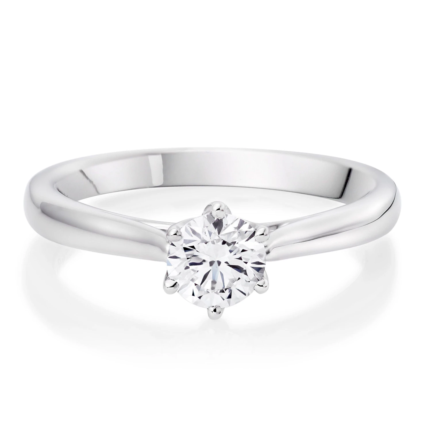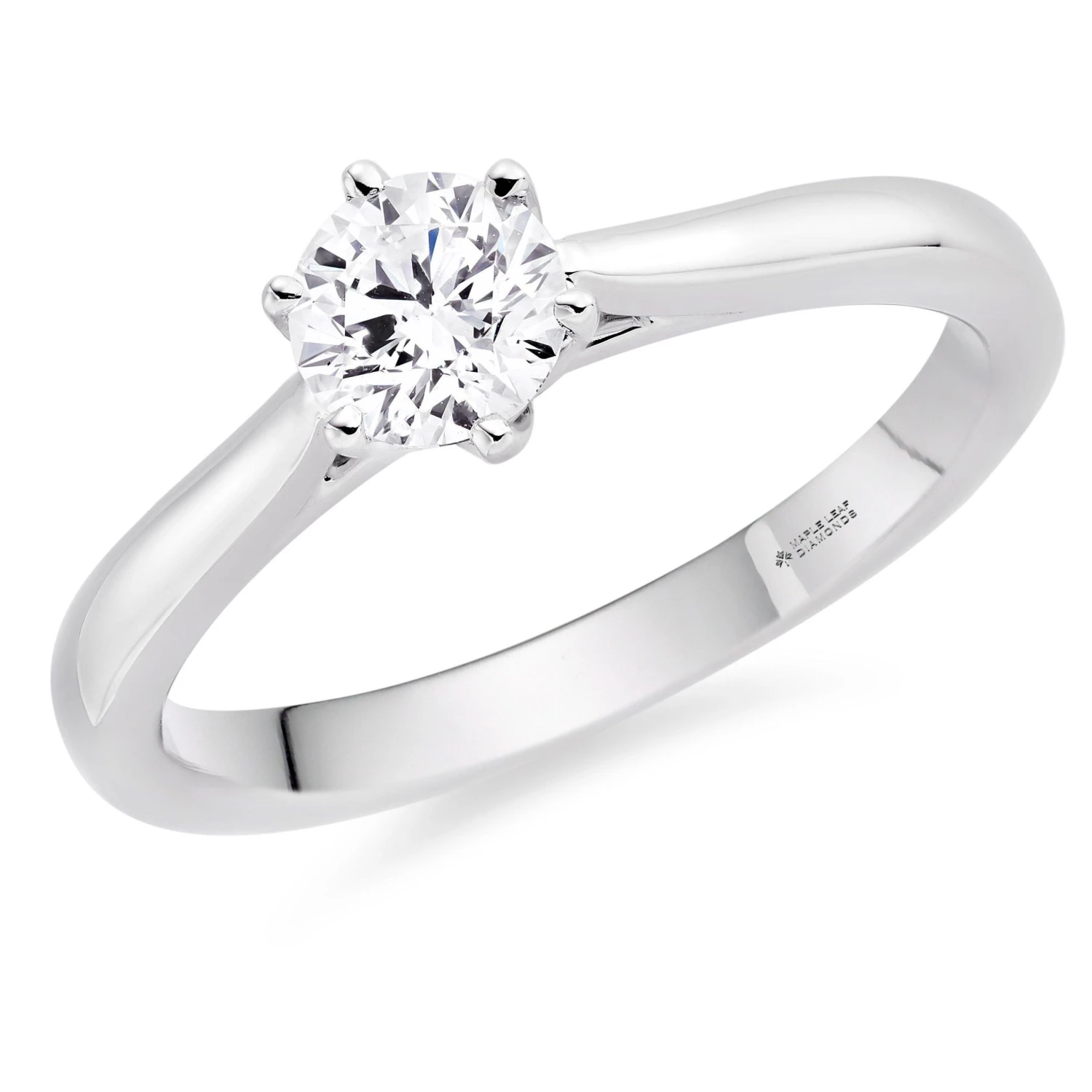 Perfect for celebrating your love for each other, this 18ct white gold Maple Leaf Diamonds Solitaire Diamond Ring is guaranteed to take their breath away. The six claw setting gives it a romantic vintage vibe.