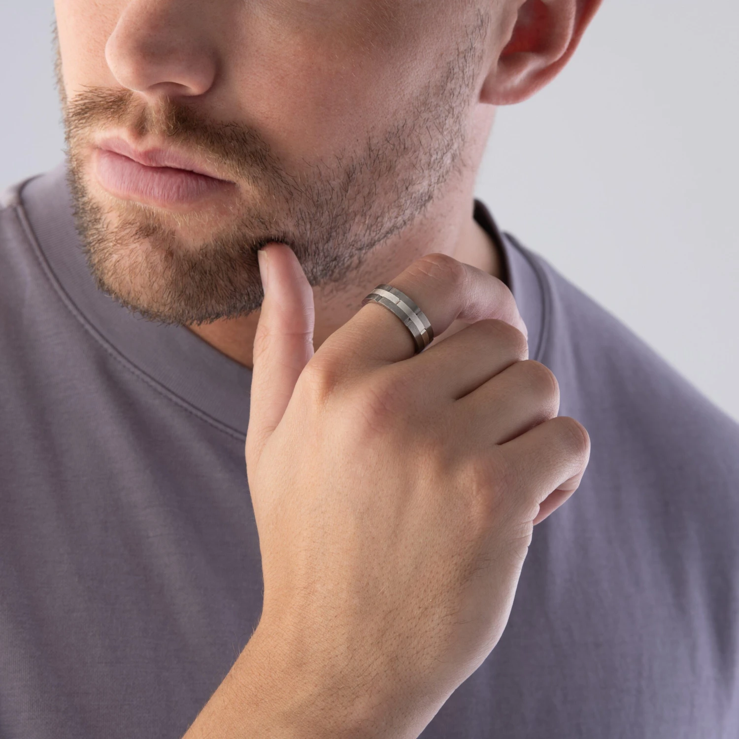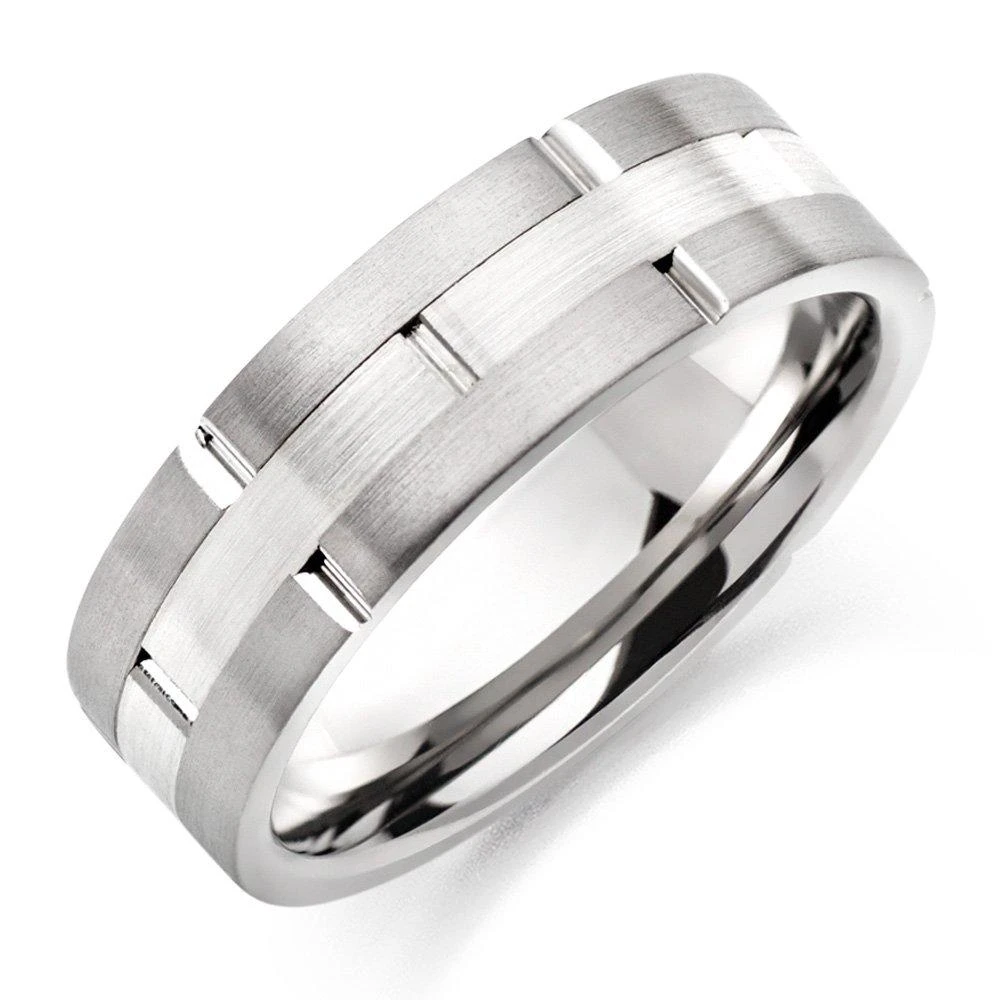 Titanium Men’s Ring. This stylish Titanium ring has a two tone effect with a symetrical cut out. The perfect gift for any occasion. Ring width 7mm.