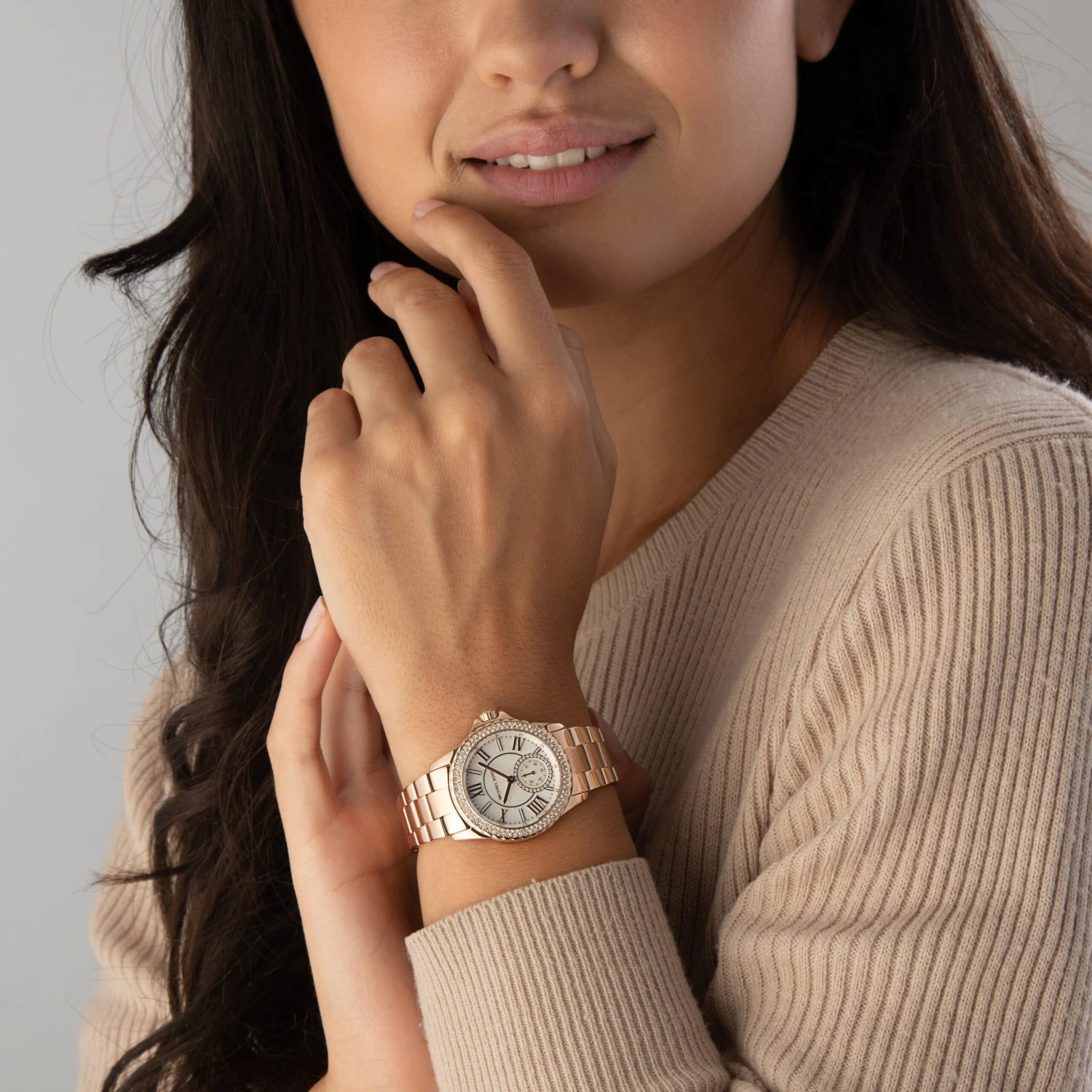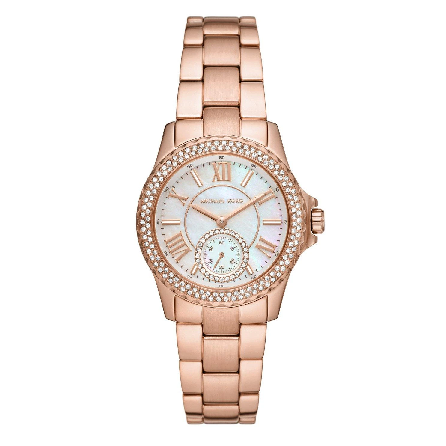 Enhance every look with this Michael Kors Everest Rose Gold Tone Crystal Ladies Watch. Radiating a designer sparkle that will complement every style, this glamourous timepiece is bound to become your new favourite.