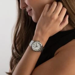 - Silver dial with stainless steel hands and roman numeral hour markers