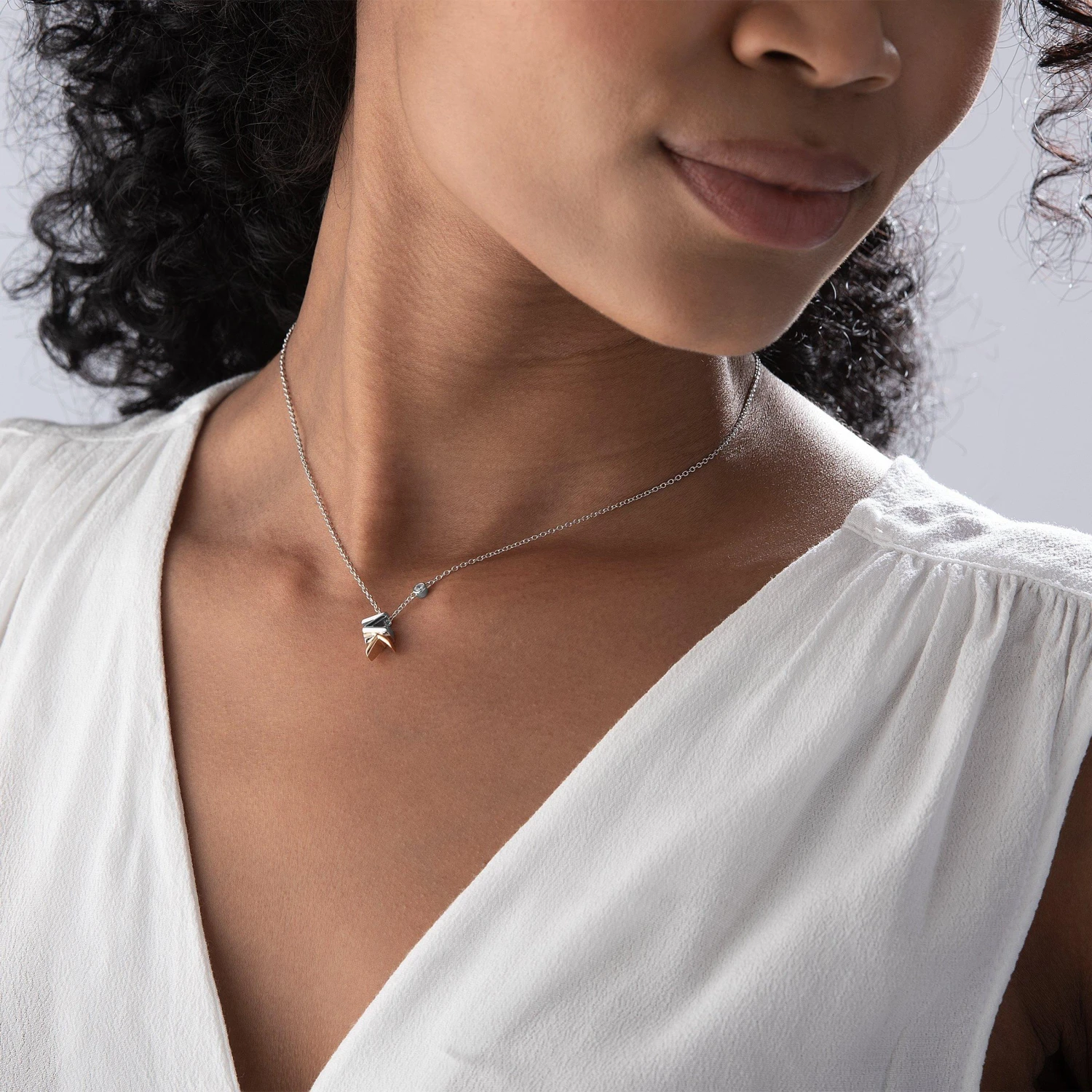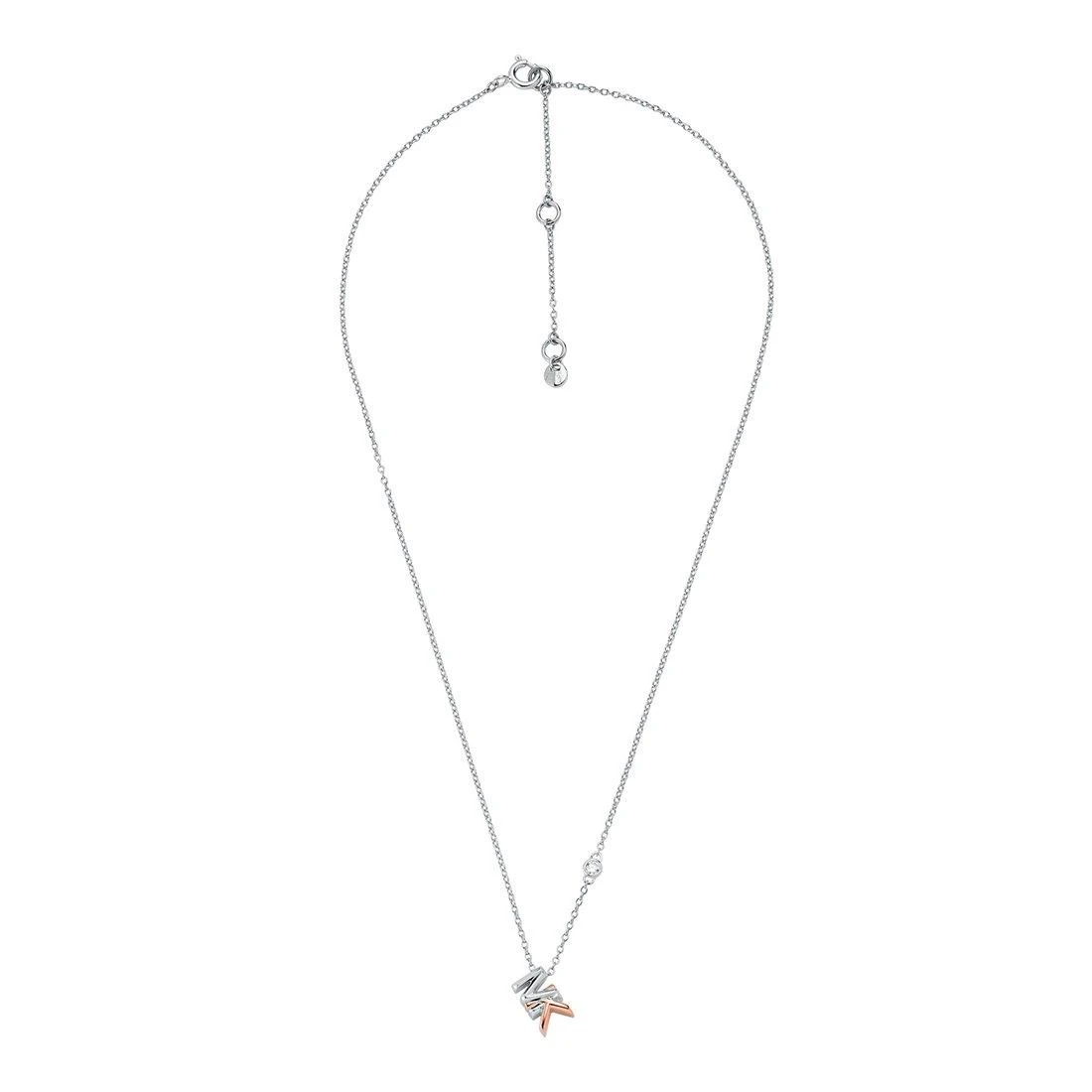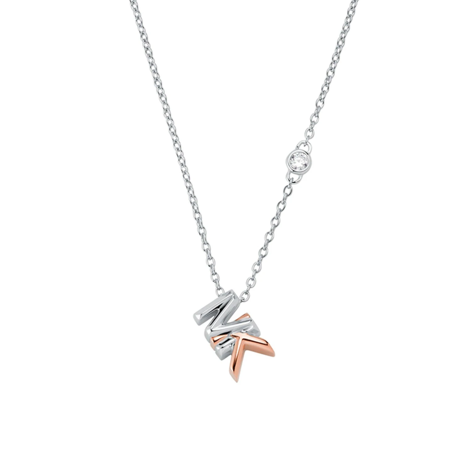 Simple and elegant, this Michael Kors Silver and Rose Gold Tone Logo Necklace will add just the right amount of glamour to every outfit.