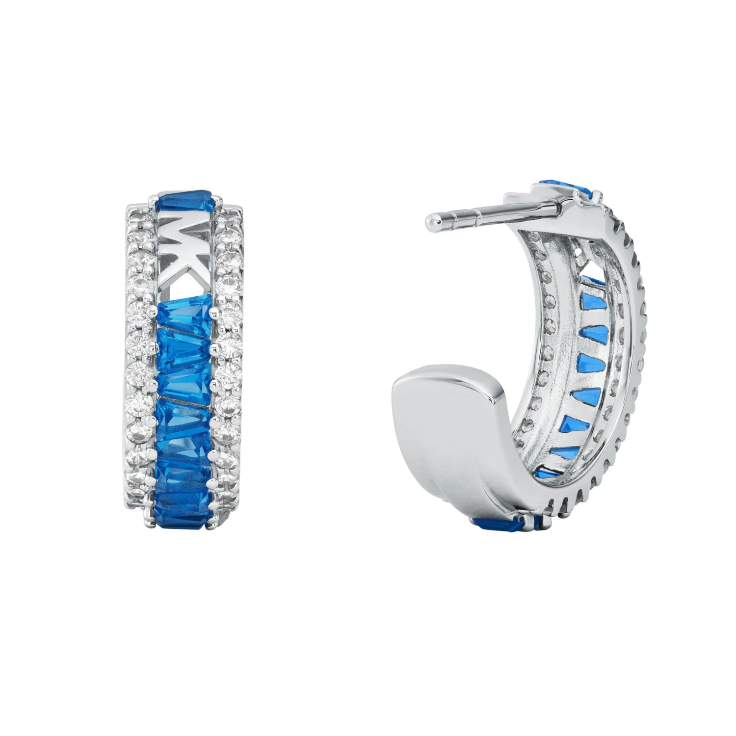 Add a dose of effortless glamour to every look with these Michael Kors Silver Cubic Zirconia Hoop Earrings. Beautifully crafted with an array of blue and clear cubic zirconia crystals, this magnificent pair are bound to steal the show.