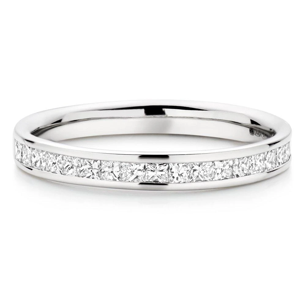 Symbolising your eternal love, this Platinum Diamond Princess Cut Half Eternity Ring is the ultimate in sophisticated sparkle.