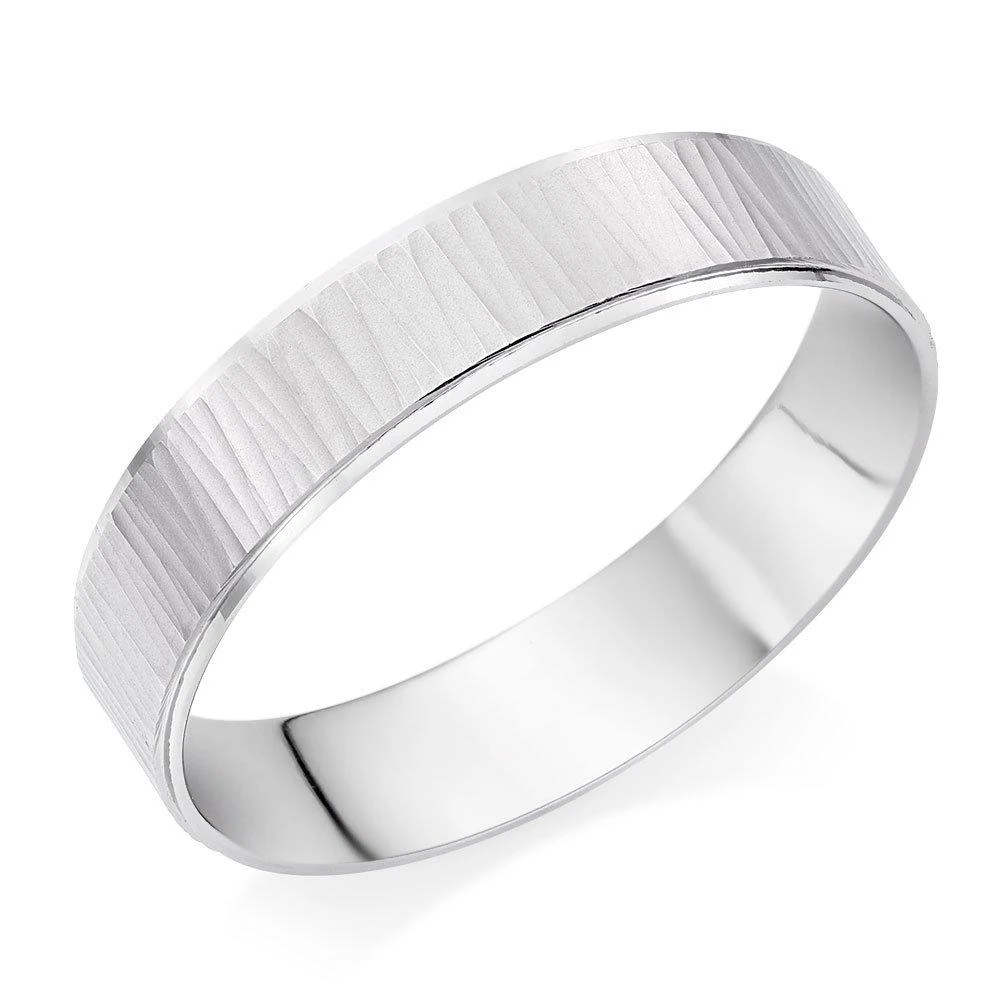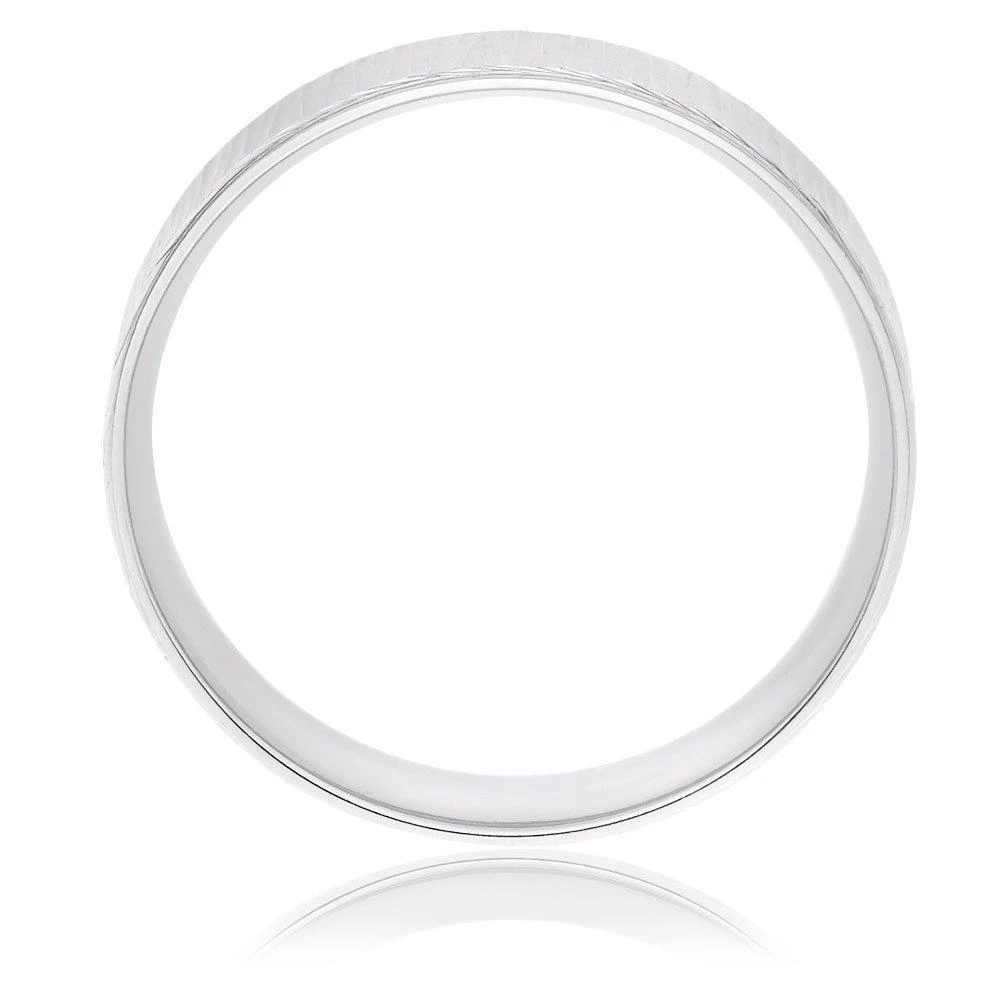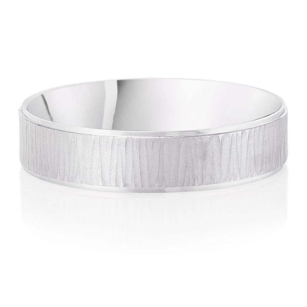 Designed in platinum for a bright white finish, this Platinum Textured Men’s Wedding Ring features a subtle hammered finish for a wonderfully modern design.