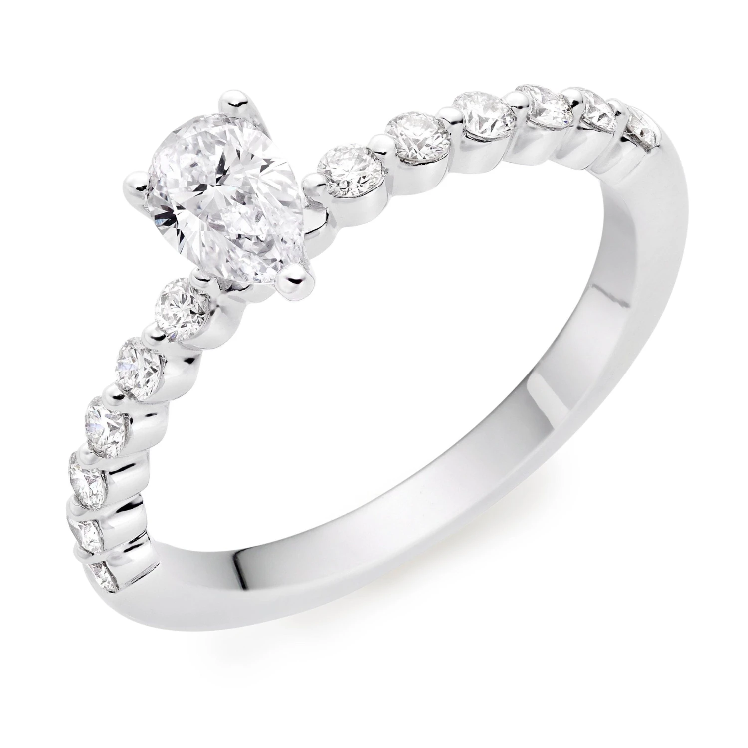 Timeless in beauty and romance, this Starlit Platinum Diamond Pear Cut Ring has been lovingly crafted in polished platinum, boasting a constellation of diamonds radiating together in a unique shared setting. Lovingly designed to create an illusion of a scalloped edge effect, showcasing a magnificent sparkle you can treasure forever.