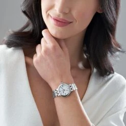 - Silver coloured dial with blue Roman numeral and diamond hour markers