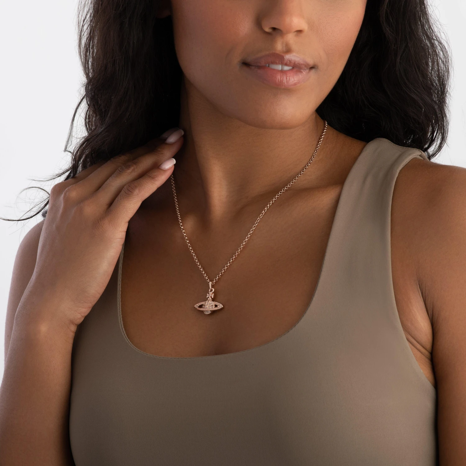 Add on-trend glamour to your look with this Vivienne Westwood diamante rose gold tone orb pendant, the perfect choice for Vivienne Westwood fans. Putting the brand’s most iconic symbol in centre stage, this rose gold tone necklace showcases the unmistakable orb, finished with glittering crystals for a sparkling finish. Show off your appreciation for this iconic British brand with this pendant, a fabulous addition to day and evening wear. 752107B/3