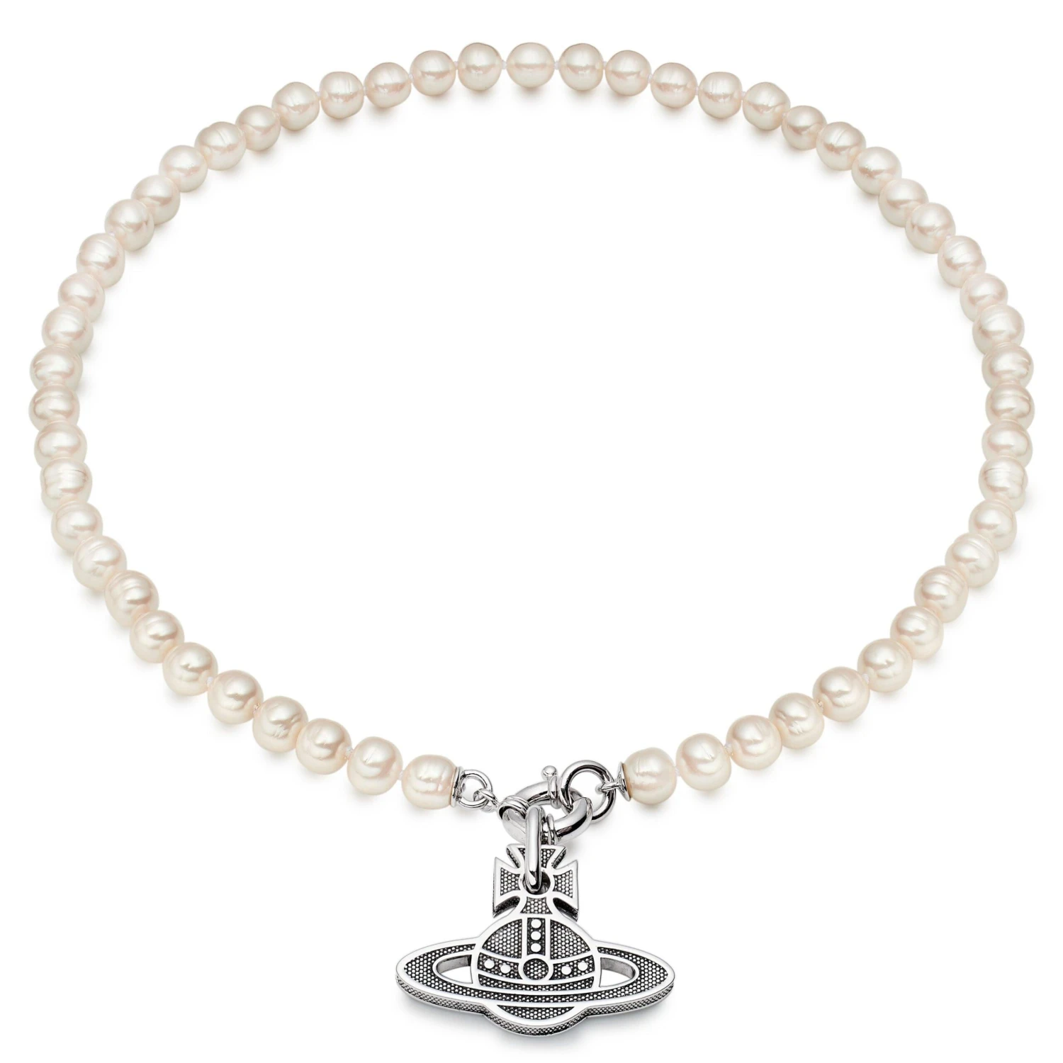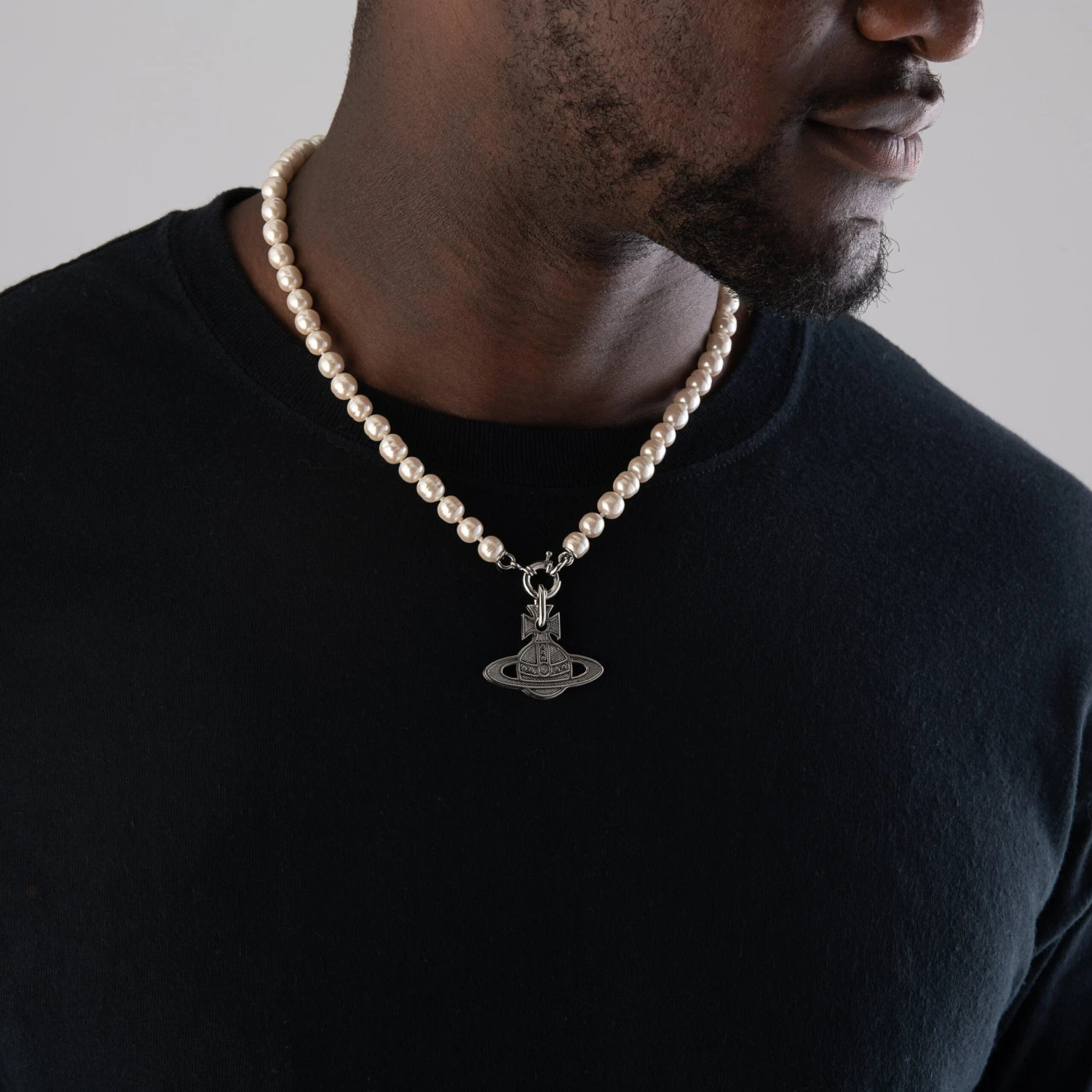 Putting a contemporary twist on a classic design, this Vivienne Westwood Hilario Pearl Men’s Necklace has been crafted to enhance every look. Showcasing the iconic orb motif paired with pearl detailing for the ultimate designer look.