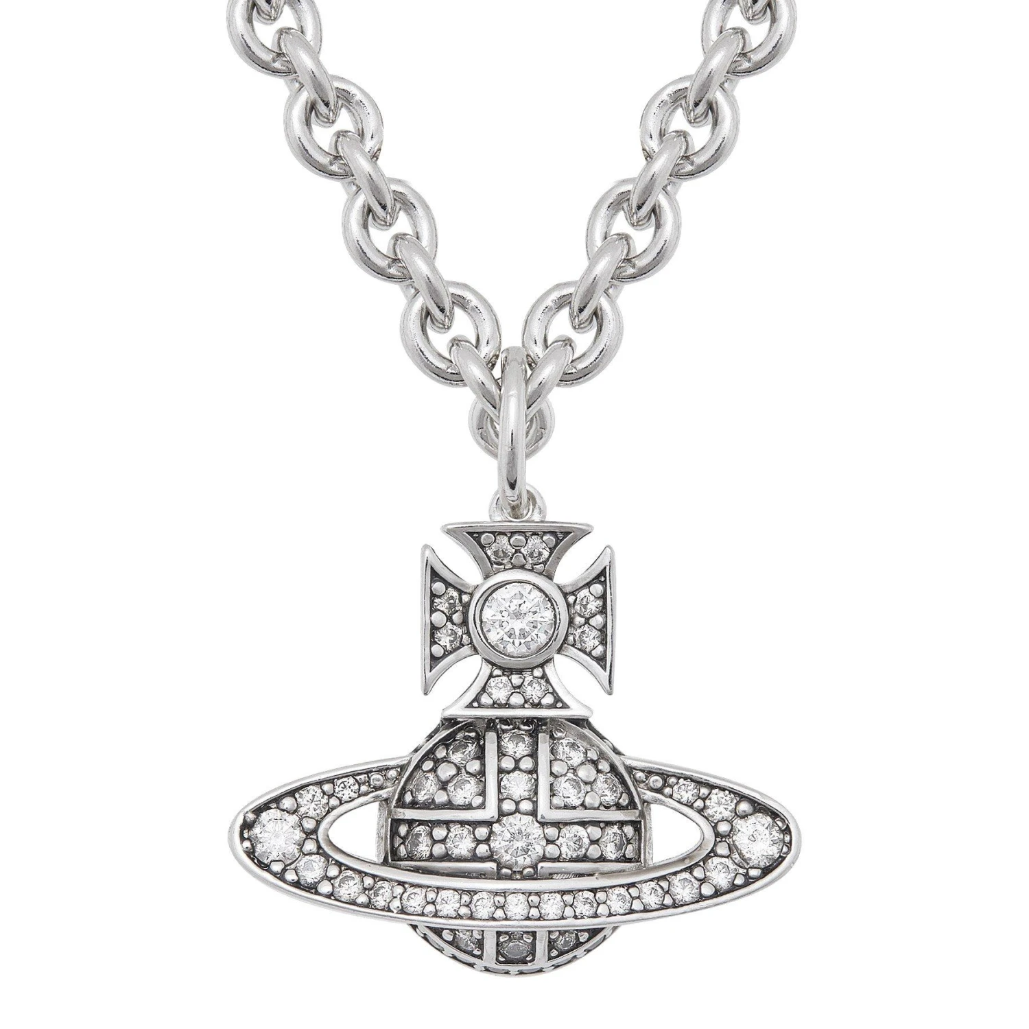 Sparkle in designer style with this Vivienne Westwood Silver Cubic Zirconia Necklace. Showcasing the iconic orb motif, this stand out piece will elevate every look.
