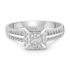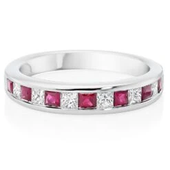 18ct White Gold Diamond Ruby Princess Cut Half Eternity Ring